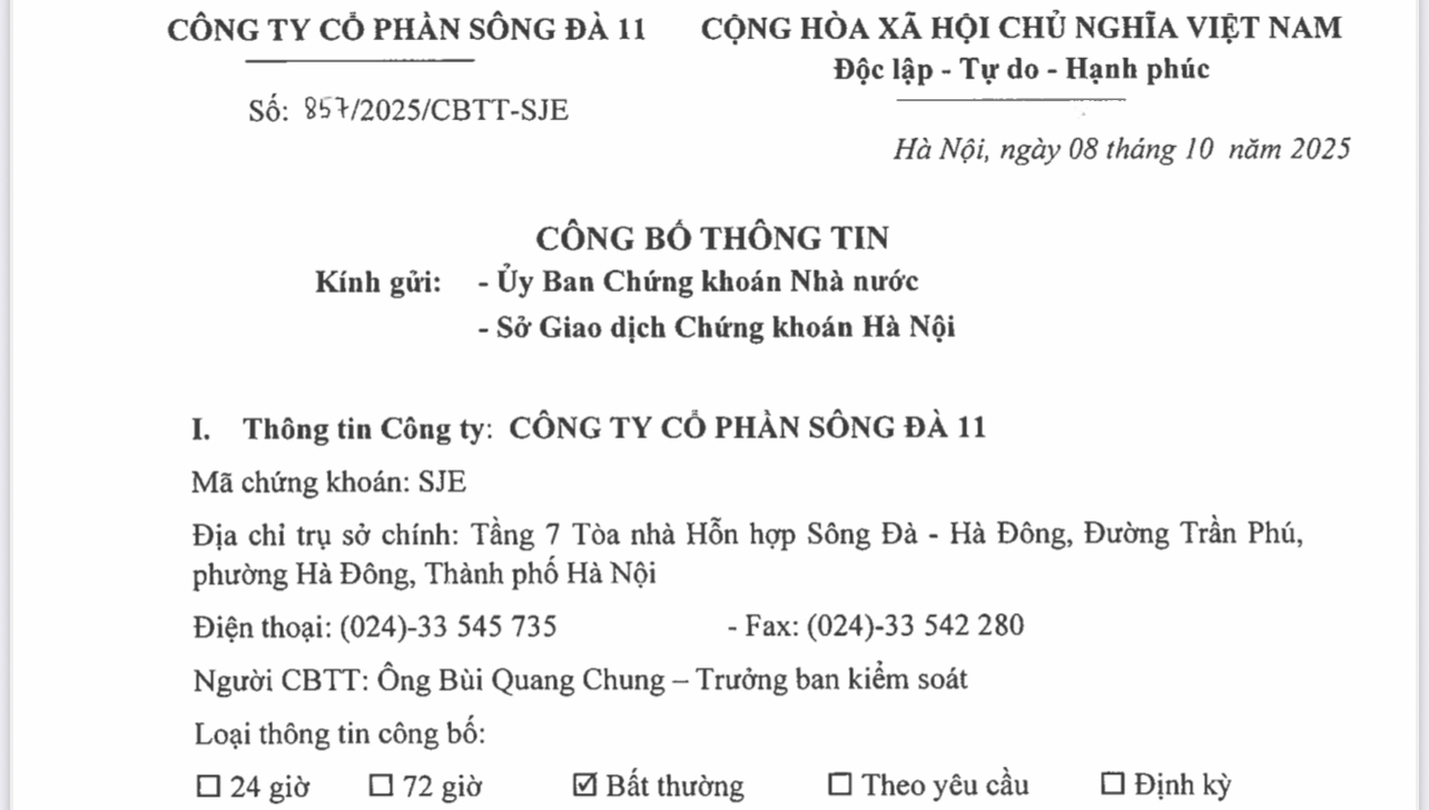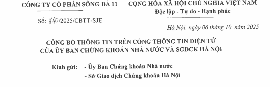 Công bố thông tin, Quan hệ cổ đông Điều chỉnh phương án sử dụng vốn thu được từ đợt chào bán cổ phần cho cổ đông hiện hữu NQ. 51 Bài viết liên quan Báo cáo kết quả chào bán thêm cổ phiếu ra công chúng của SJE NQ 51- CBTT Điều chỉnh phương án Sử dụng vốn 840. CBTT báo cáo kết quả chào bán